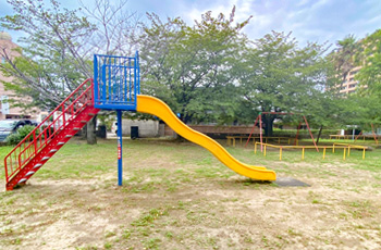 山口県宇部市にある公園になります。 宇部市中心の新川駅が最寄り駅となります。 道路を挟んで3つに区切られています。トイレ設置あり! 木々に囲まれ滑り台やブランコなどの遊具で遊べます。